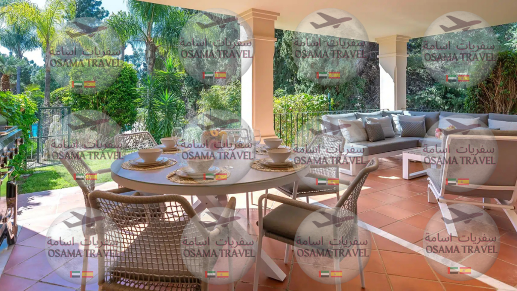 ثلاثة غرف مع تراسة في القرب من بانوس 3 bedrooms luxurious retreat next to puerto banus Bedrooms. 3Bathrooms 2Guests 6Kingbed 2Singlebed 2 Air conditioningBeachsideDining roomGarden viewKitchen equippedSatellite TVAlarmClose to sea / beachFully fitted kitchen Individual A/C unitsLiving roomTransport nearAmenities nearClose to shopsFully furnishedInternet – Wi-FiPool viewWater tank شقة ثلاثة غرف فخمة مع تراسة كبيرة مع مدخل مباشر الى المسبح في المجمع السكني على بعد مسافة مشي على الاقدام الى بانوس. Plan your dream vacation in Spain Let our experts help you plan and book your perfect Spanish getaway today. Book now