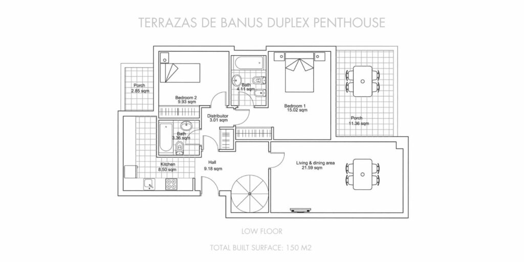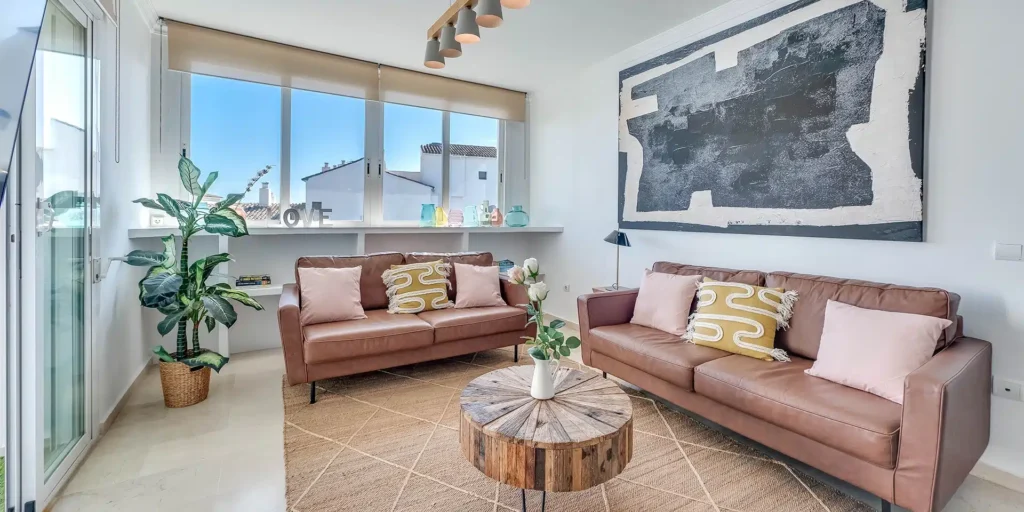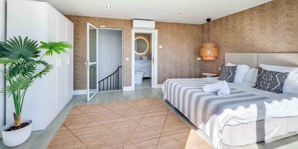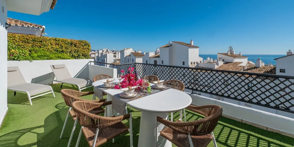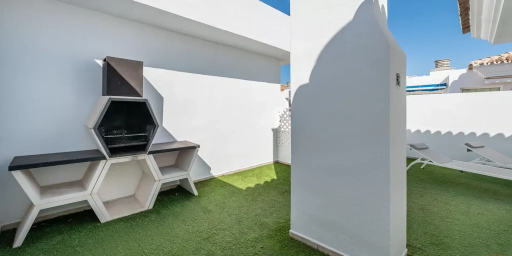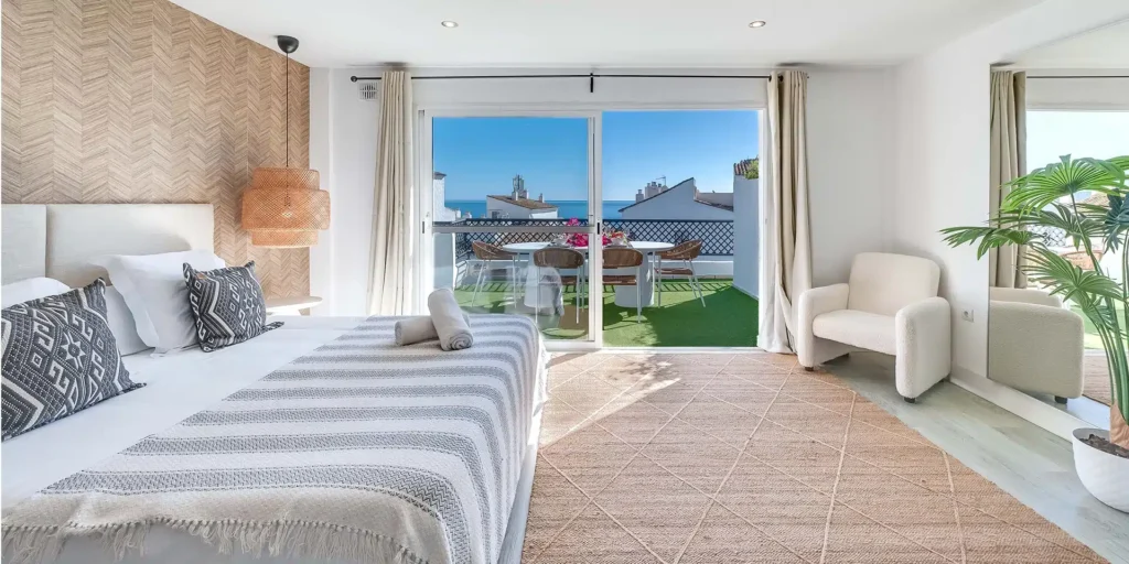 ستُدهش من كل التفاصيل التي يُقدمها هذا العقار الفاخر للإيجار. يتميز بأثاث أنيق بلمسات فيروزية تُحاكي المناظر البحرية في الخارج، وجدران بيضاء في الداخل تُضفي أجواءً أندلسية ساحرة. يغمر ضوء البحر الأبيض المتوسط ​​الذهبي كل ركن من أركان المعيشة عبر نوافذ واسعة، بعضها يؤدي إلى أحد تراسيك الخاصين.